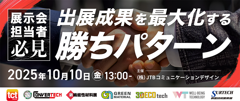 - 2025/10/10(金)配信 ウェビナー「出展成果を最大化する勝ちパターン」の情報を公開いたしました。