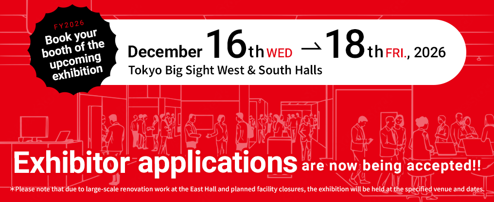 - Applications for the December 2026 exhibition are now being accepted. (Wednesday, December 16 - Friday, December 18, 2026 Tokyo Big Sight West and South Halls)