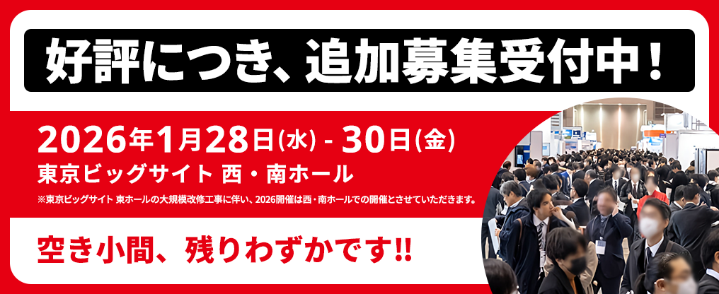 - Applications for exhibiting at the 2026 event are now being accepted. (Wednesday, 1/28(2026)-Friday, 1/30(2026) Tokyo Big Sight West/South Hall) Click here to apply.